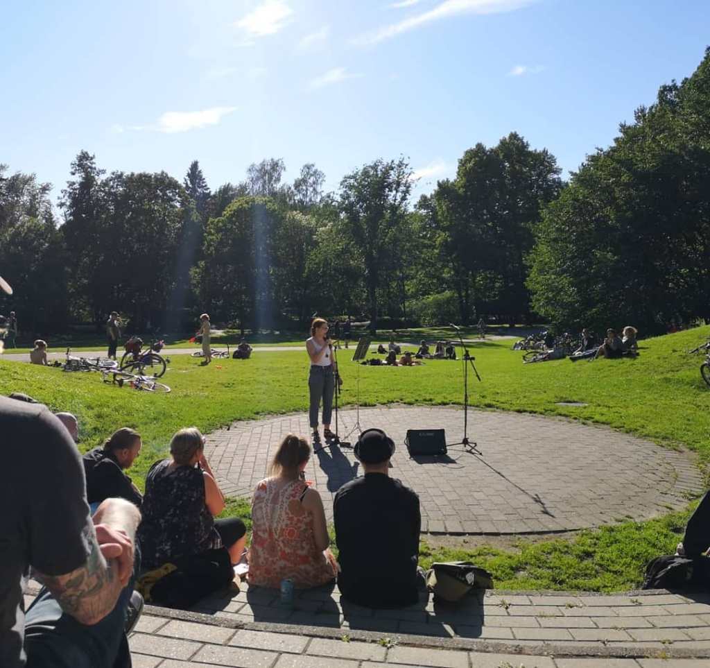 Puisto Open Mic lämmittelijäesiintyminen, Alppipuisto, Helsinki 12.7.2020 Kuva: Jani Tiilikainen